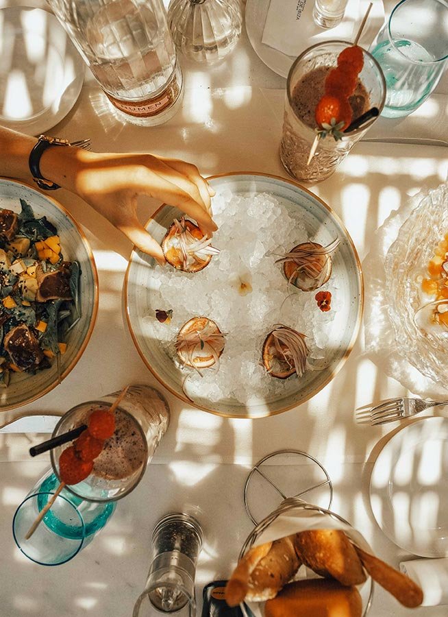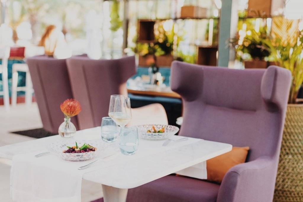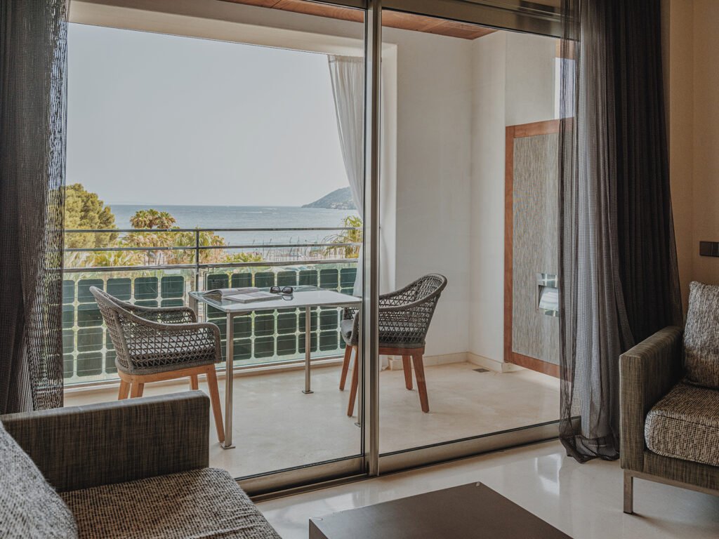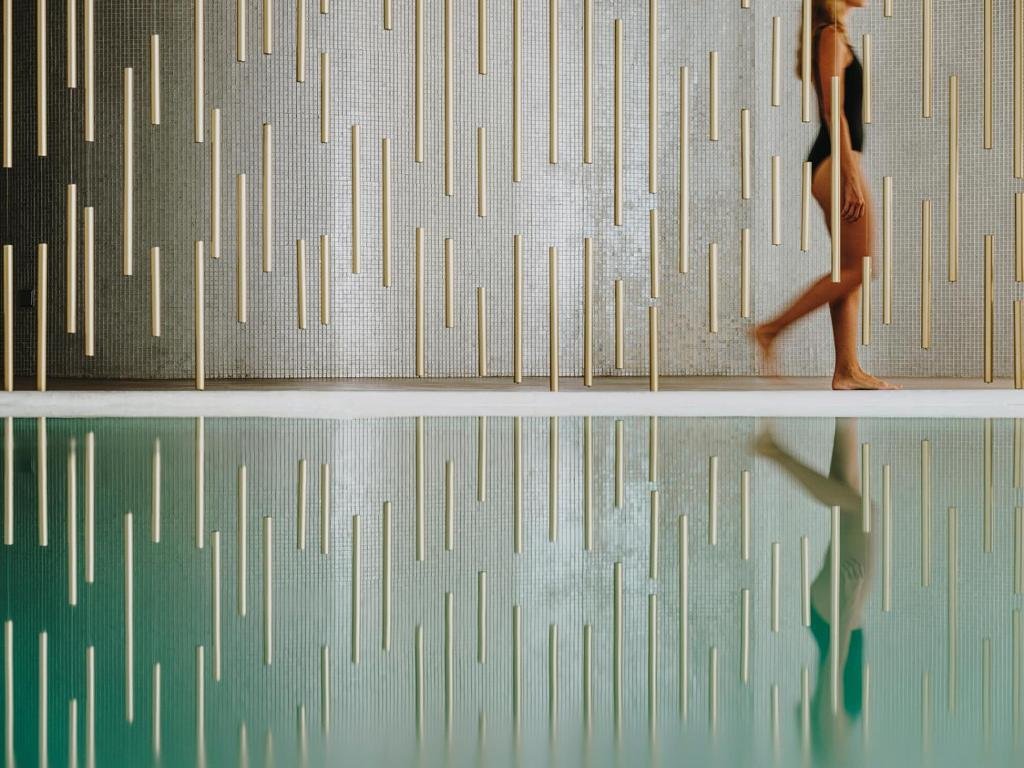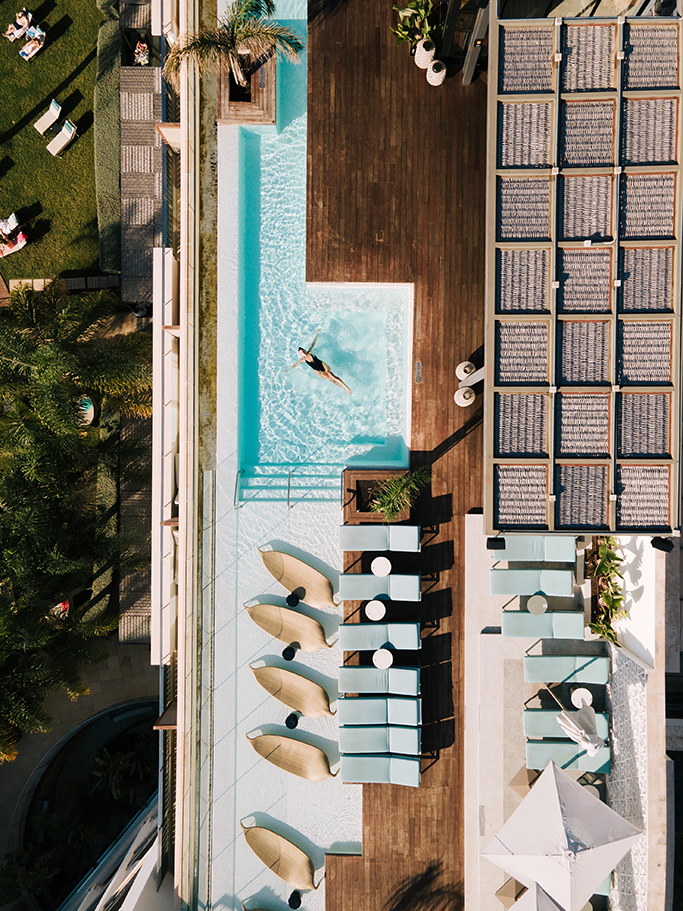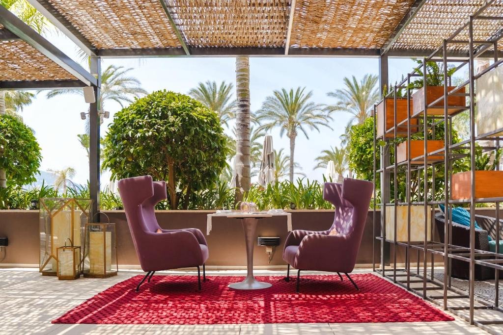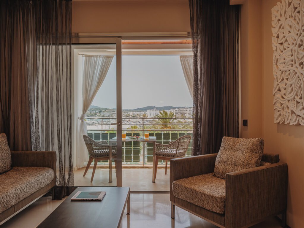 Contemporary Mediterranean-style room designed under Feng Shui principles. The interiors feature natural elements to make for a most pleasant experience. The bathroom is lined with natural stone and iridescent tiles that light up with the sun recreating sea shells.